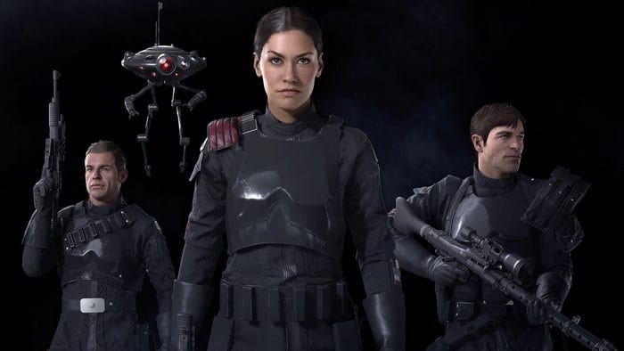Abgerundet wird das Setting an dieser Stelle durch unseren Hauptcharakter Iden Versio, die vorab ein authentisches Auftreten einer imperialen Offizierin verkörpert. Ihre unterstellten Kameraden Del Meeko und Gideon Hask stehen ihr dabei treu zur Seite. Die Spezialeinheit des Imperiums, der sogenannte Inferno-Trupp, steht und dient zur Ausführung ganz besonderer Aufgaben des Imperiums.