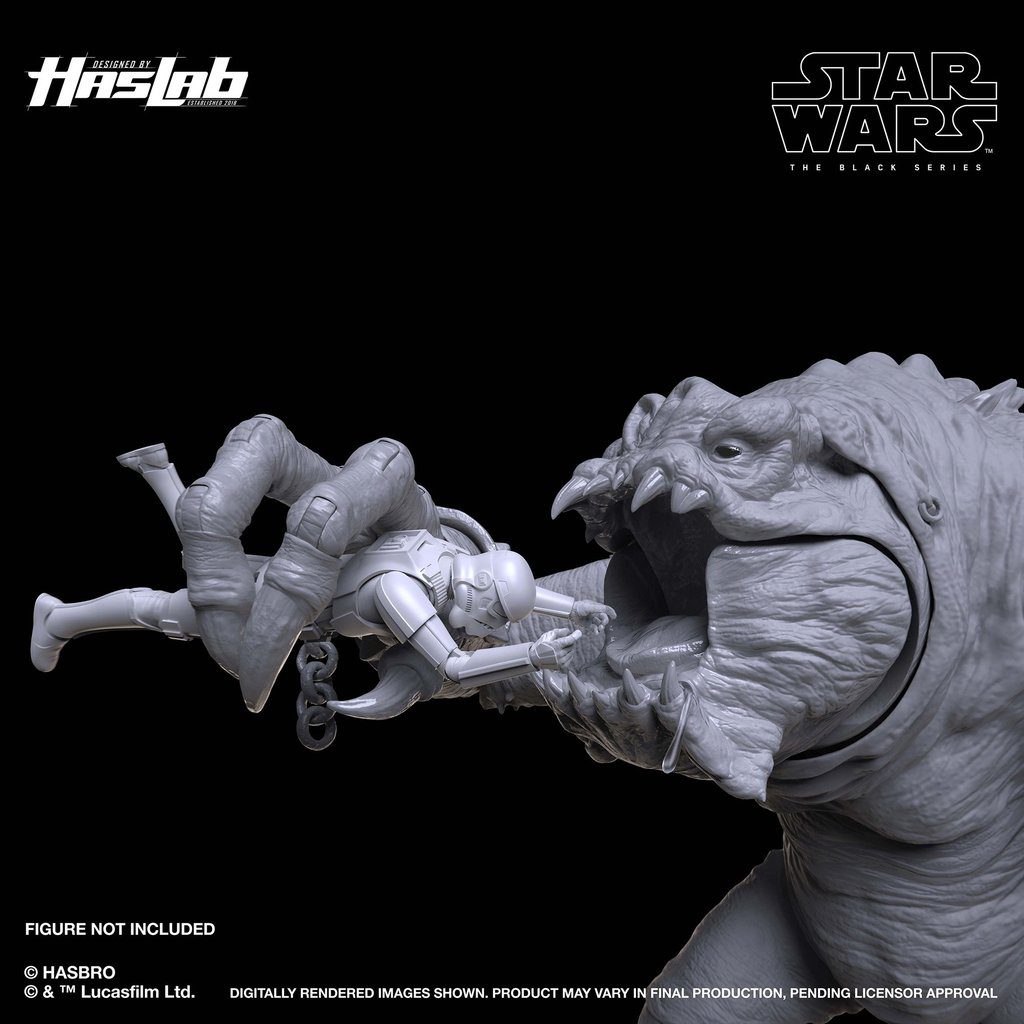 Wenig überraschend lehnt sich der Rancor an den Rancor in Jabbas Palast aus „Star Wars Episode 6: Die Rückkehr der Jedi-Ritter“ an. Bemerkenswert ist, dass er über 45 Gelenkpunkte verfügt. So viele wurden noch nie in der Black Series verbaut. Deshalb kann er die regulären Actionfiguren wie im Film auch mit seinen Krallen greifen und hochheben. Welche Figur würdet ihr ihm zum Fressen servieren?