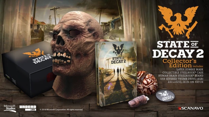 Jüngst wurde die Collector's Edition zu State of Decay 2 vorgestellt. Zombiefans sollten hier voll auf ihre Kosten kommen. Der CE liegt nicht nur ein abgetrennter Finger als USB-Stick bei, sondern auch noch ein menschliches Gehirn als Standfuß und eine authentische Zombiemaske.