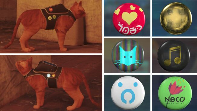Zwar ist das Katzen-Abenteuer Stray bei Belohnungen, die ihr für erfolgreich absolvierte Aufträge erhaltet, nicht unbedingt sonderlich spendabel. Dennoch haben sich die Entwickler eine nette Idee überlegt, wie einige erzielten Erfolge direkt an eurem Fellknäul angezeigt werden: Abzeichen. Diese Badges erhaltet ihr an verschiedenen Stellen im Spiel und werden direkt an dem Rucksack eurer Katze angebracht.
