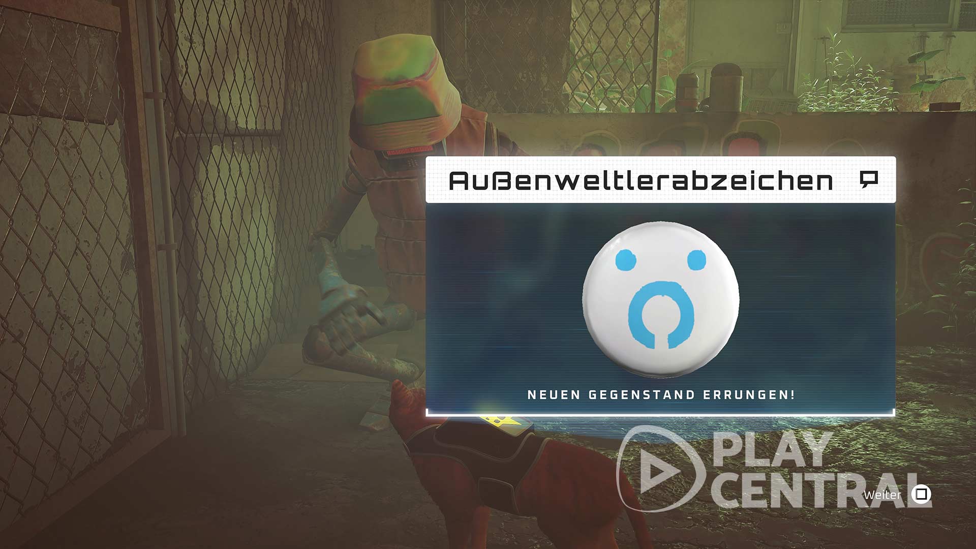 Das Außenweltlerabzeichen wird euch automatisch verliehen, sobald ihr Seamus bei der Suche nach seinem Vater geholfen habt. Folgt dem Roboter und er schenkt euch zu Beginn von Kapitel 7 das Abzeichen.