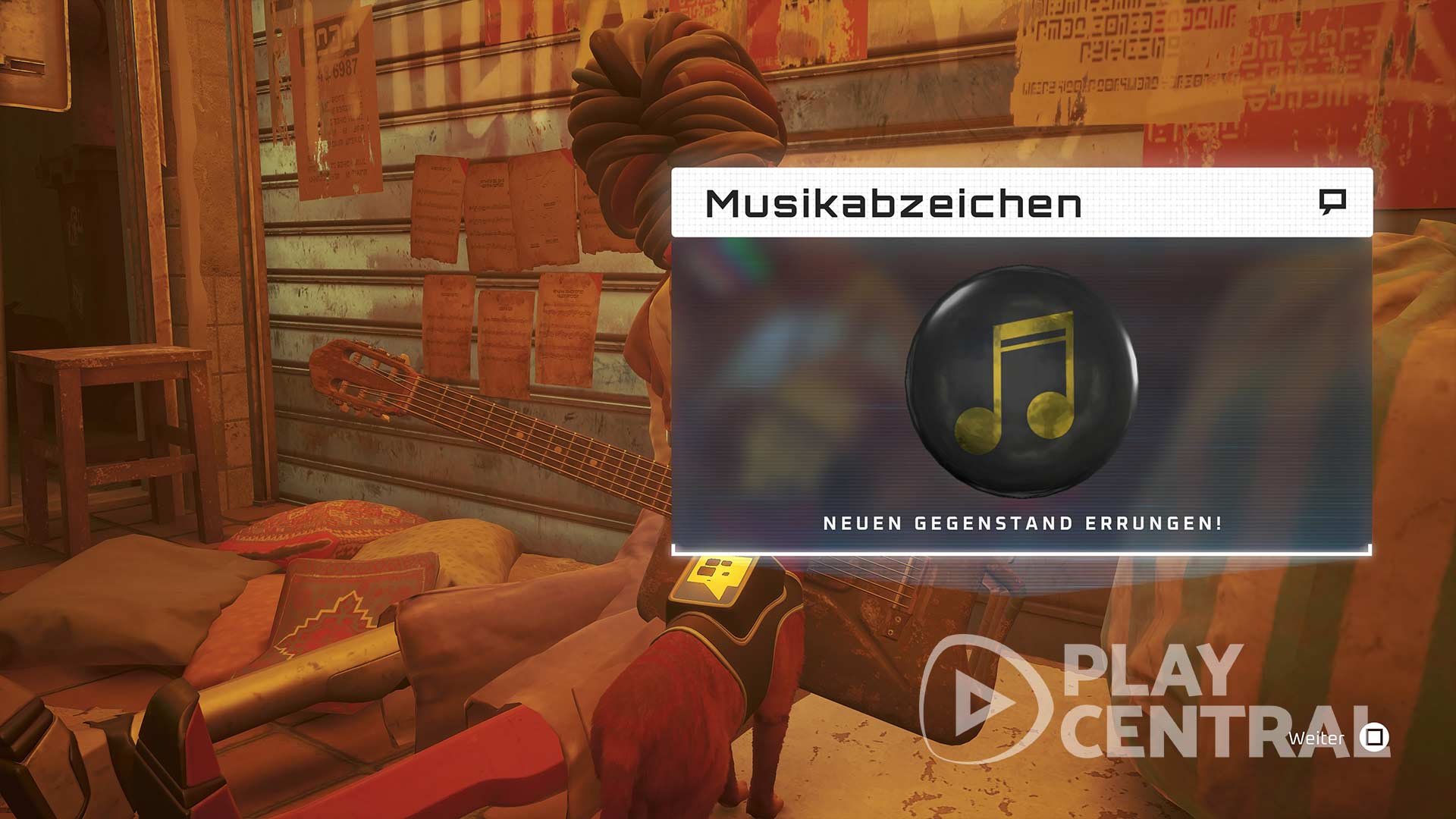Das erste Abzeichen, das ihr euch in „Stray“ verdienen könnt, ist das Musikabzeichen und erfordert ein wenig Arbeit. Im Vorfeld müsst ihr dem Musiker Morusque alle acht Notenblätter bringen. Diese sind über Kapitel 4 – Die Slums verteilt und zum Teil ebenfalls recht gut versteckt.