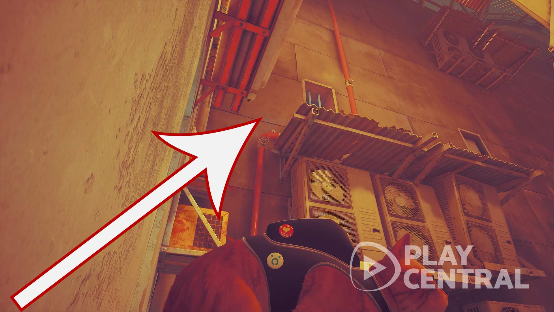 Das Polizeiabzeichen ist sehr gut versteckt und werdet ihr wahrscheinlich nicht durch puren Zufall entdecken. Ihr findet den Badge in Kapitel 10 – Stadtzentrum. Sucht als erstes das große Roboter-Hologram auf, dass sich im Zentrum der Stadt befindet. Bei genauerer Betrachtung fällt ein Richtungspfeil darauf auf. Dieser führt euch in eine enge Gasse.