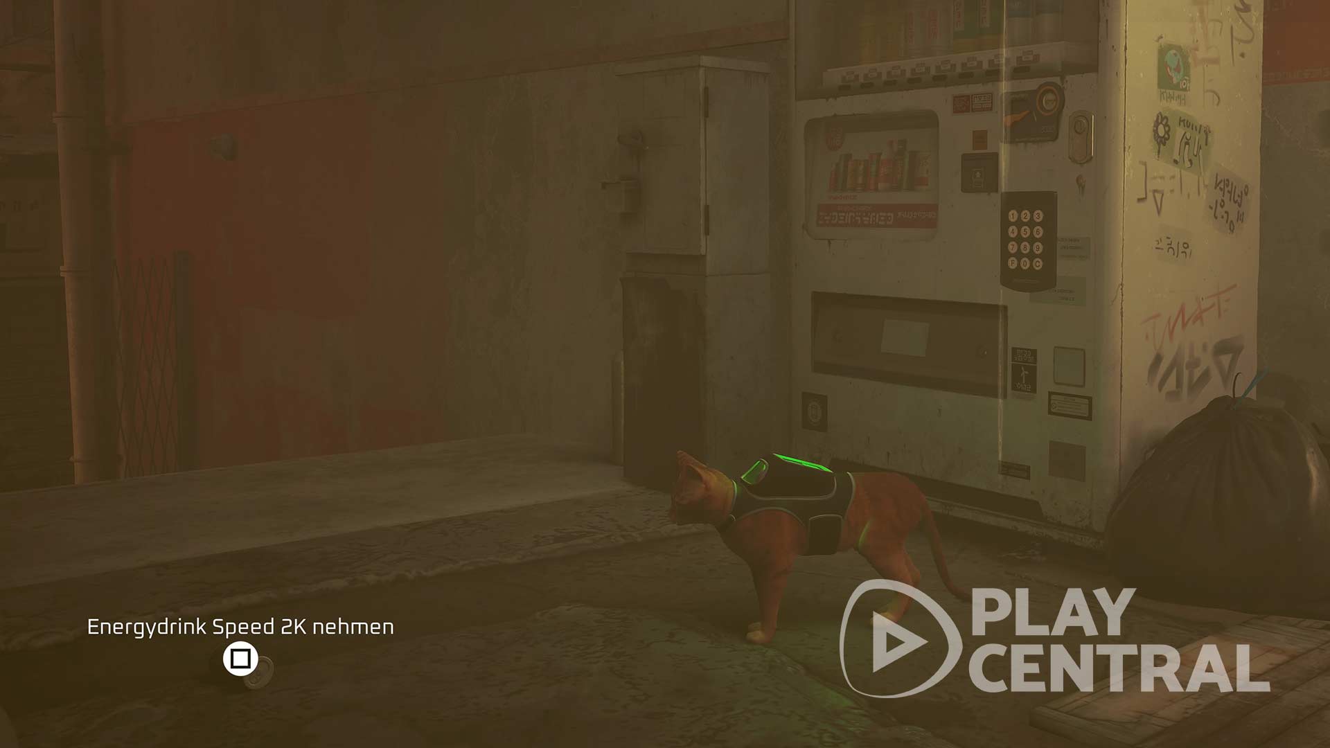 Wo finde ich in „Stray“ Energy Drinks? Lauft zurück zu dem Wächter und wählt dieses Mal den linken Weg. Hier seht ihr an einer Hauswand stehend bereits einen Getränkeautomaten (in Kapitel 4 sind mehrere Automaten verteilt), mit dem ihr interagieren könnt. Im Anschluss fällt eine Dose Energydrink heraus und kann von euch eingesammelt werden. Bringt diese nun zum Händler, um das vierte Notenblatt zu erhalten.