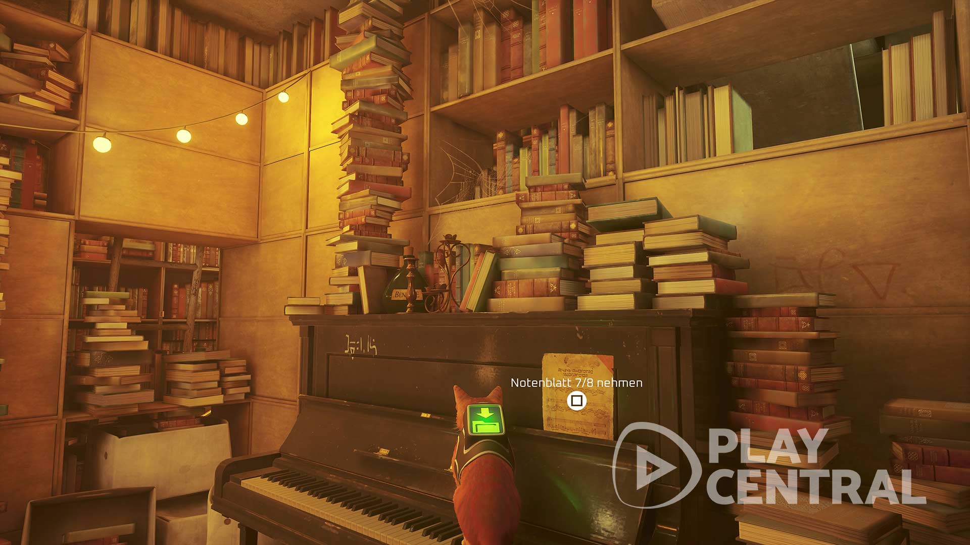 Lauft direkt nach rechts und biegt dann nach links in den abgetrennten Bereich mit dem Klavier ab. Auf den Tasten des Instruments findet ihr das siebte und somit vorletzte Notenblatt.
