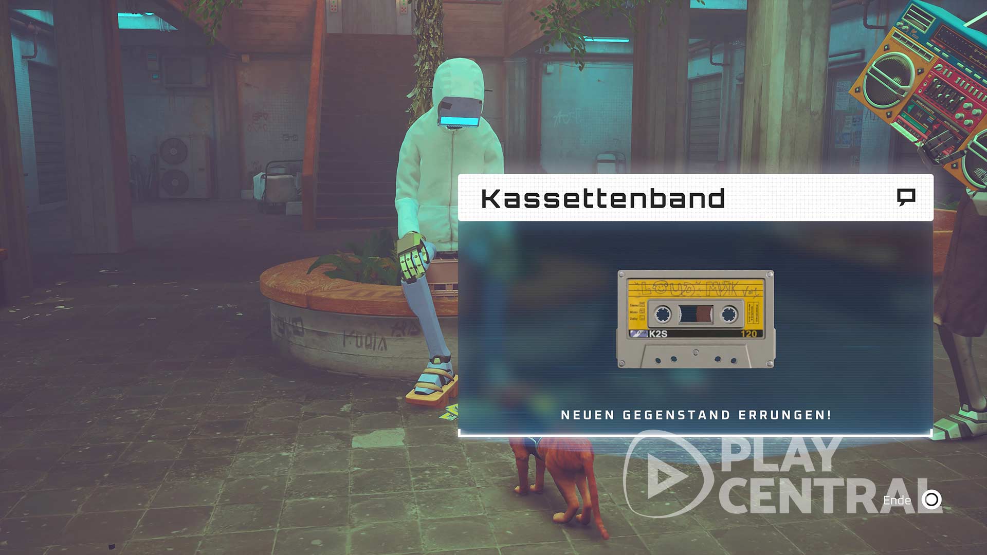 - Nun lauft ihr zurück zu den Teenager-Robotern, um das Kassettenband als Belohnung zu erhalten.