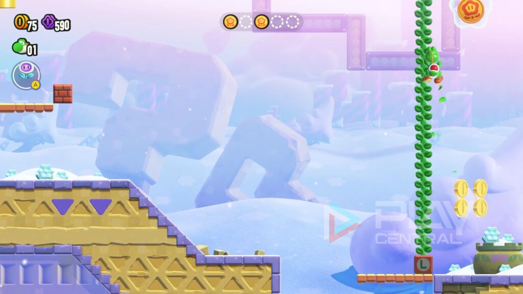 Das Rätsel der Leere müsst ihr in der Welt 2, also W2 suchen. Ihr erkennt es anhand eines großen, gelben Fragezeichens inmitten der Schneewelt. Das Level trägt den Namen: „Suchtrupp: Rätsel der Verstecke“.