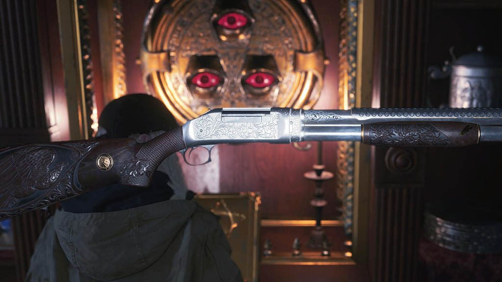 Schrotflinte finden, Schrank mit Dreiäugiger Schlüssel öffnen – Resident Evil 8-DLC