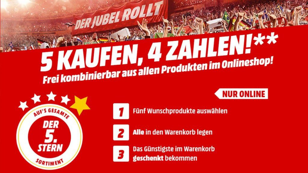 MediaMarkt: 5 Produkte kaufen, nur 4 bezahlen!