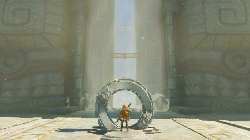 Sobald ihr sicher am Eingang des Labyrinths gelandet seid, aktiviert den Temb’sai-Schrein, um einen Teleportationspunkt zu erhalten, mit welchem ihr stets hierhin zurückkehren könnt. Jetzt müsst ihr nur noch mit der Vorrichtung interagieren, um wieder die mysteriöse Stimme zu hören und mit dem Rätsel von Nördliches Irrschloss: Himmel beziehungsweise Labyrinth des Himmels zu beginnen.