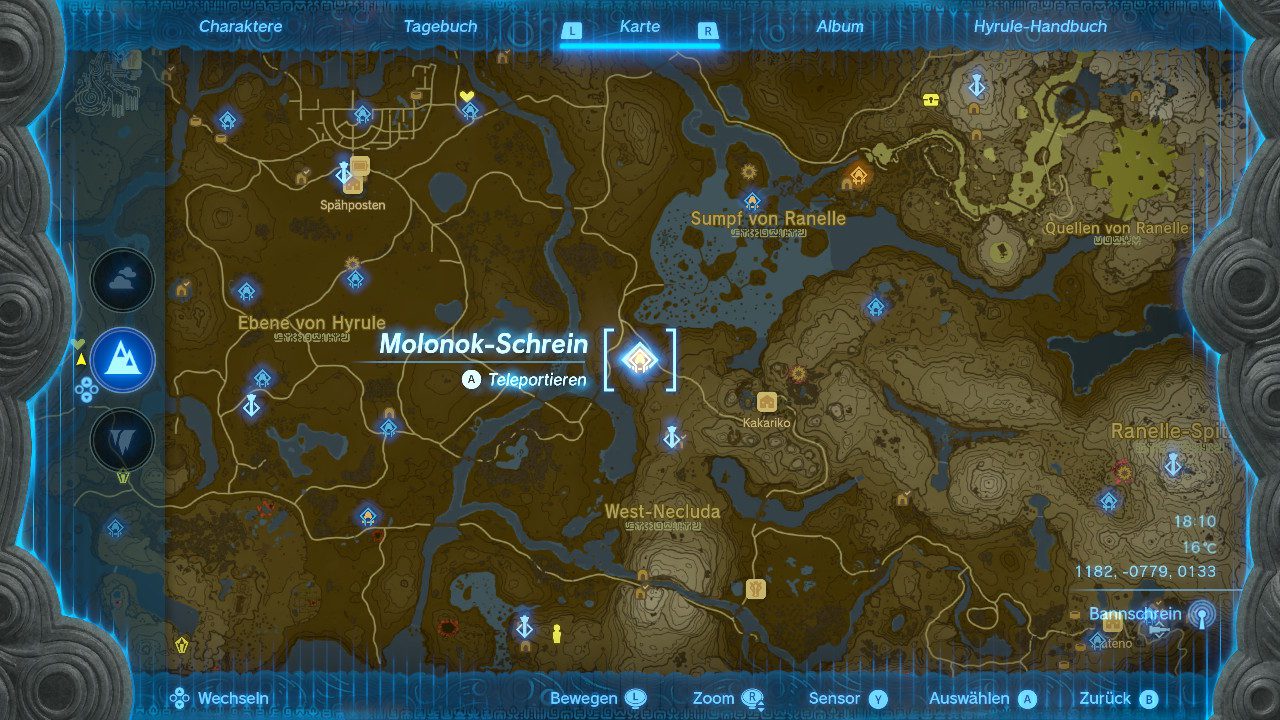 Ihr findet diese tief schwebende Insel am südlichen Ende vom Sumpf von Ranelle, beziehungsweise westlich von Kakariko, unweit der Blumen-Sandbank. Doch wie soll man den Schrein erreichen?
