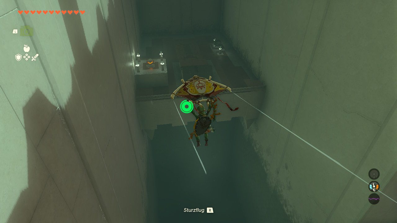 Wie ihr schnell feststellen werdet, besteht dieser Schrein nicht wie üblich aus bis zu drei kleinen Rätseln. Stattdessen ist der komplette erste Raum bereits die ganze Fedlerleicht-Herausforderung.