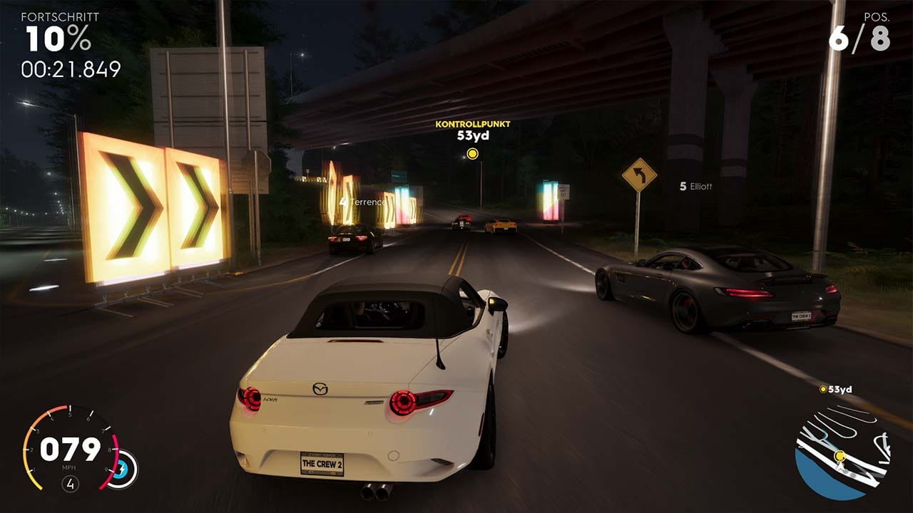 Sehr schön: Auch in The Crew 2 integrieren Ubisoft und Ivory Tower einen Mehrspielermodus. In diesem schließt ihr euch zu Vierer-Trupps zusammen, erforscht die Spielwelt und nehmt gemeinsam an Renn-Events teil. Der Host bestimmt dabei, welche Veranstaltungen ihr auswählt und beamt euch kurzerhand zum Ort des Geschehens. Im Anspieltest funktionierte das System ausgezeichnet und war ein Garant für zusätzliche Belohnungen und unterhaltsame Rennen.