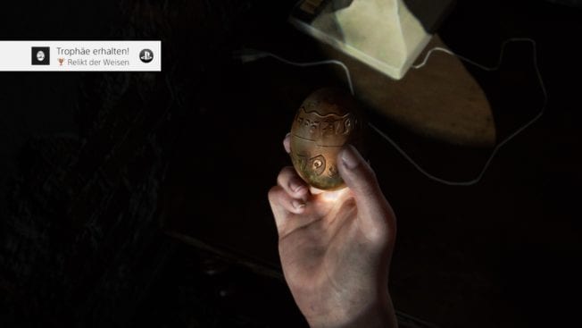 Sammelt ihr das Ei auf, erhaltet ihr die Trophäe „Relikt der Weisen“. Bei dem Schatz handelt es sich nicht um ein gewöhnliches Ei, sondern wortwörtlich um ein Easter Egg, das Entwickler Naughty Dog ins Spiel eingebaut hat. Kenner der Jak & Daxter-Reihe werden es sofort wiedererkennen.