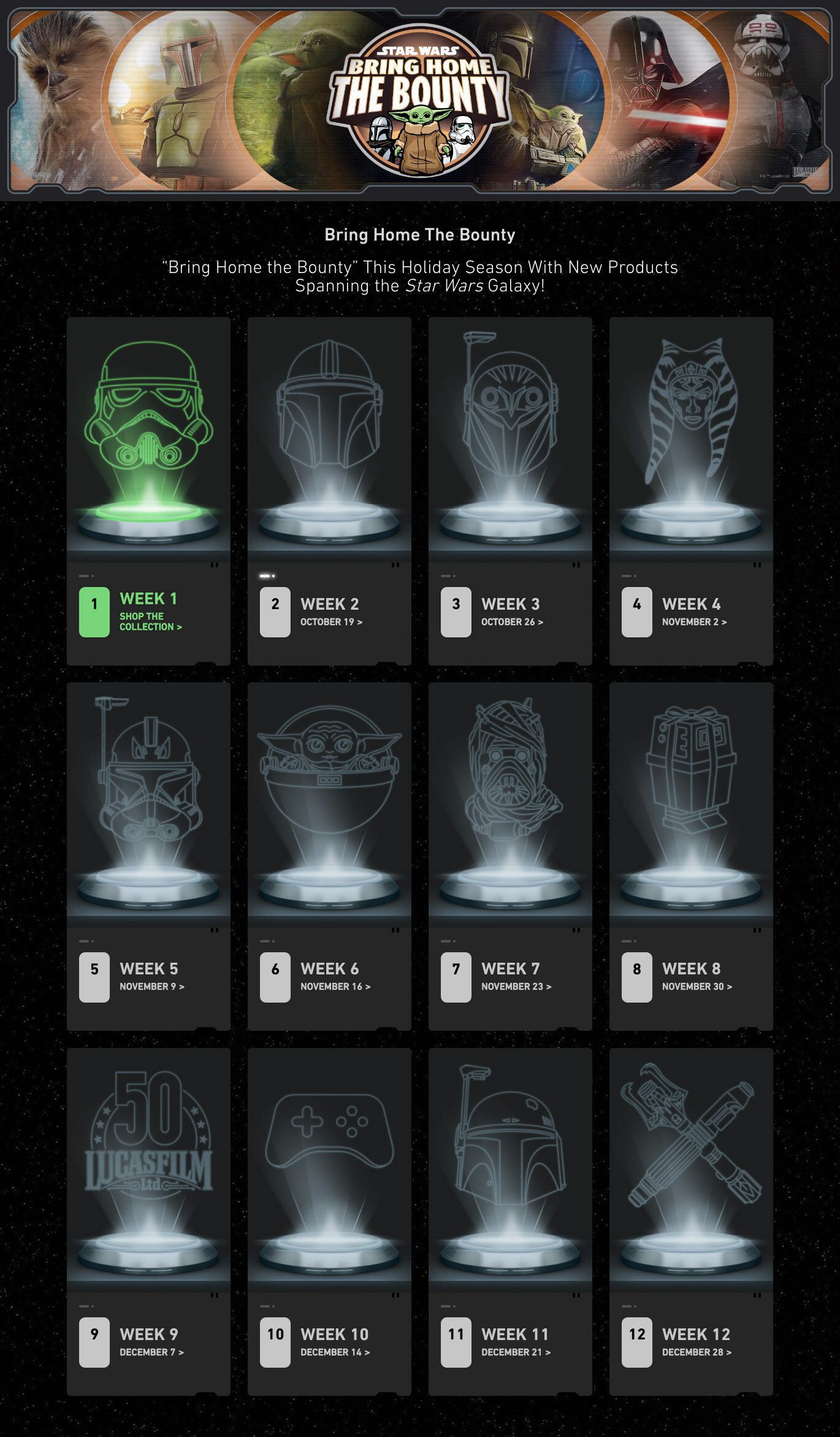 Diese Kampagne soll auf globaler Ebene diverse Produkte vorstellen, inklusive Spielzeuge, Sammelgegenstände, Bücher, Kleidung und sogar „Games“. Heißt also, dass in der 10. Woche der Kampagne ein „neues Star Wars-Spiel vorgestellt“ wird.