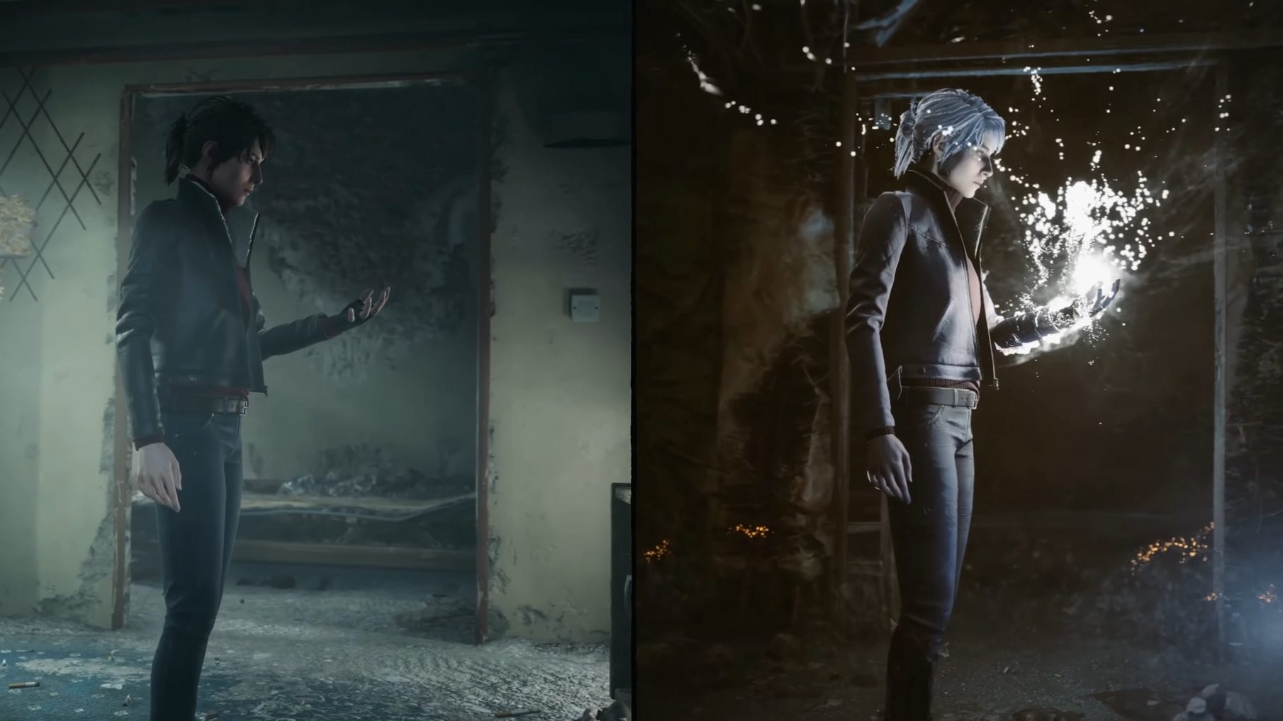 Auf der linken Seite seht ihr eine Realität ähnlich der unseren, auf der rechten Seite eine düstere, gefährliche Welt, die der Protagonistin direkt weißes Haar beschert.