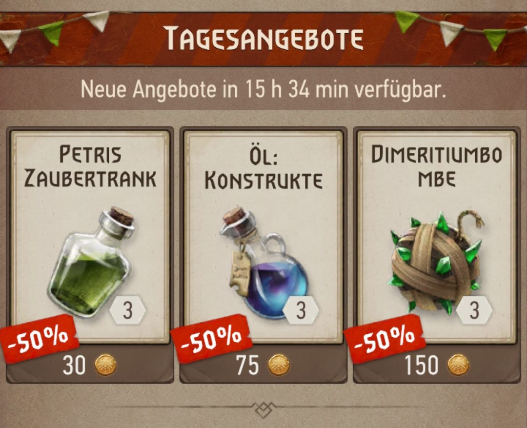 Außerdem gibt es die täglich wechselnden Tagesangebote. Solltet ihr also mit einem Gegenstand liebäugeln, schaut lieber hier nach einigen Schnäppchen, anstatt euch die einzelnen Items zum Vollpreis zuzulegen.