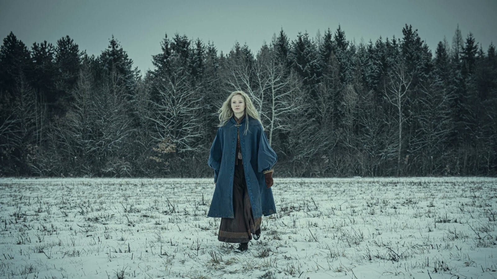 Auf dem nächsten Foto sehen wir eine zerzauste Ciri, die am Rande eines beschneiten Waldgebietes wandert. Offenbar hat sie hier ihre Zeit als Prinzessin Cirella bereits hinter sich gelassen und befindet sich auf der Flucht und der Suche nach ihrer Vorhersehung Geralt.