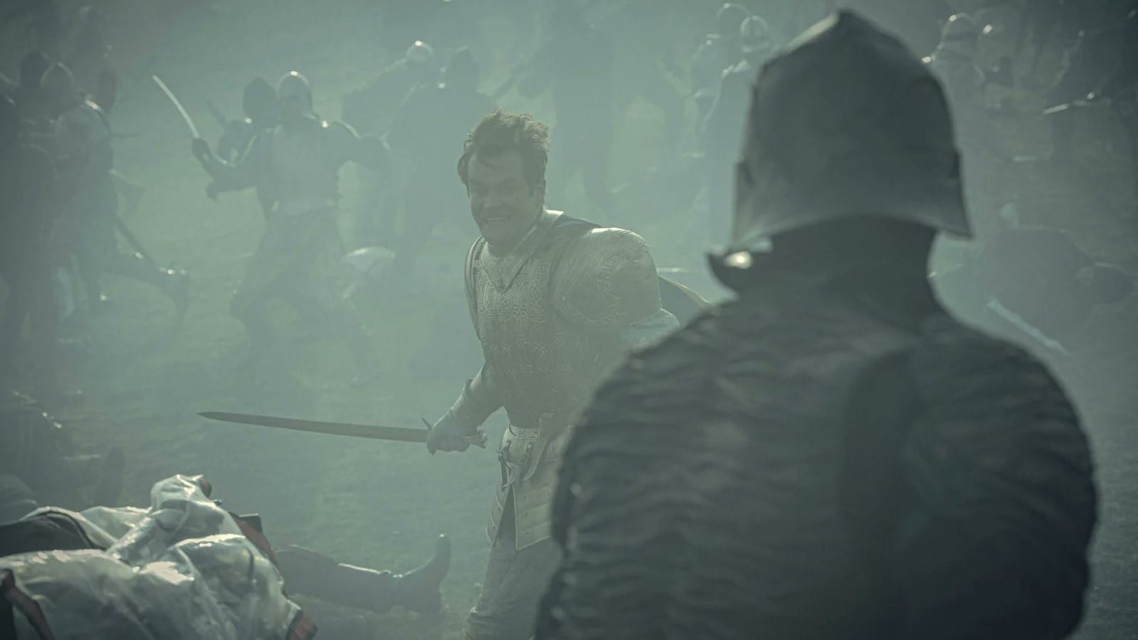 Das dritte Bild zeigt mit hoher Wahrscheinlichkeit Eist Tuirseach (Björn Hlnyur Haraldsson). Der ehemalige Jarl von Skellige wurde später König von Cintra und Gemahl der Königin Calanthe (Jodhi May). Der Soldat in der nilfgaardischen Rüstung legt die Vermutung nahe, dass es sich hierbei um den niederschmetternden Einfall Nilfgaards in die nördlichen Königreiche und dementsprechend um die Schlacht bei Marnadal handelt.