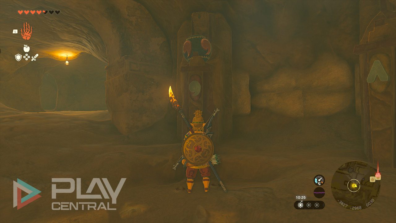 Klettert links die Leiter hoch und schaut zur anderen Seite des Raums und ihr seht das verräterische Glitzern von Edelsteinen und dahinter die nächste Kugel. Klettern ist hier leider nicht möglich und die Ultra-Hand kommt auch nicht ran, daher stehen euch diese Optionen leider nicht zur Verfügung. Aber eine andere Fähigkeit kann hier dennoch genutzt werden.