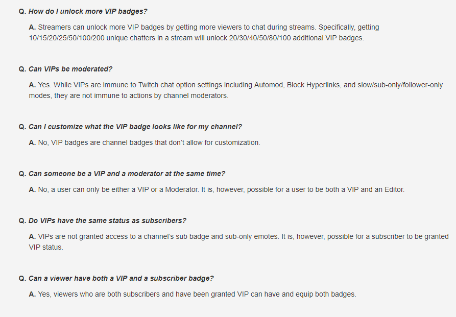 Aber vorsicht! Als Streamer könnt ihr nicht unendlich viele VIP-Chatter bestimmen. Die Anzahl hängt mit der Leistung des Streams zusammen. Der erste ''Block'' an VIP-Slots birgt zehn Plätze. Wenn ein Streamer das Achievement ''Build a Community'' erreicht, wird der erste Block automatisch freigeschaltet. Dafür benötigt ein Streamer 50 Follower und fünf verschiedene Chatter im Stream. Und das geht dann immer so weiter. Bei 10 Anwesenden im Chat gibt es zum Beispiel 20 VIP-Slots. Ein derzeitiges Limit scheint bei 100 VIP-Slots erreicht, das wiederum mit 200 einzigartigen Chattern freigeschaltet wird.