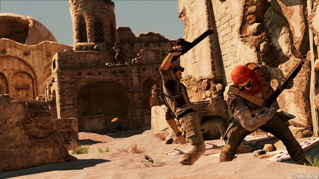 Der Spieler wird ständig eingeheizt und bekommt es mit mehr oder weniger dummen Piraten, Söldnern oder Handlangern der Oberschurkin Katherine Marlowe zutun. Der Giftzahn will nur eines: Den Ring und Profit! Doch zurück zu den eben genannten Gegnern. Hier scheint die KI deutlich eingepennt zu sein, denn wenn uns ein feindlicher aber tapferer Mitstreiter niederstrecken möchte, verlässt dieser ungehindert seine Deckung und rennt, obwohl wir ihm das Gehirn wegpusten könnten, auf uns zu. Hallo? Hier ist gerade ein Kreuzfeuer und der rennt mittendrin los? Kurios, was Naughty Dog da geritten hat. Ein weiterer Patzer passierte uns während einer Schießerei in einem französischen Schloss. Mal wieder wollte uns die Scherken der Marlowe vermöbeln, als wir Deckung hinter eines Jeeps suchten. Dieser explodierte logischerweise, als auf diesen eingeschossen wurde. Doch wir blieben wacker und hilten unserer Deckung. Urplötzlich verschwindet der Jeep, die Flammen aus dem ausgebrannten Wagen waren jedoch noch zu sehen. Ärgerlich, da wir beinah das Zeitliche gesegnet hätten.