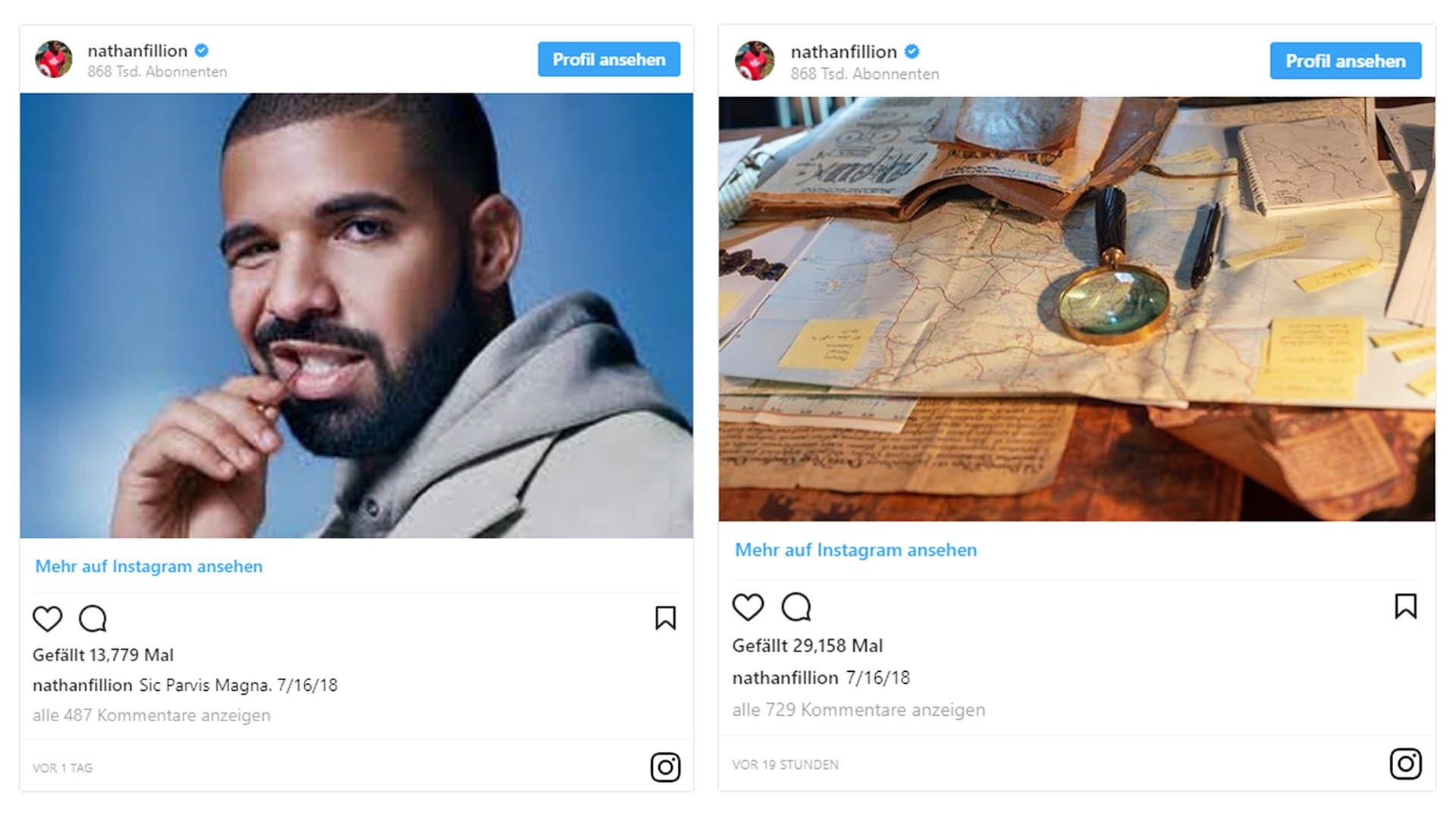 Fillion hat nämlich ein Bild mit dem gefeierten Rapper Drake gepostet. Der zugehörige Text lautet „Sic Parvis Magna“, was so viel bedeutet wie Großes aus kleinen Ursprüngen. Nach diesem Leitfaden lebte der bekannte Seefahrer Sir Francis Drake und umsegelte als zweiter Mensch 1577 bis 1580 in 10.018 Tagen die ganze Welt. Diese Attitüde sollte allen Uncharted-Fans noch tief im Gedächtnis liegen.