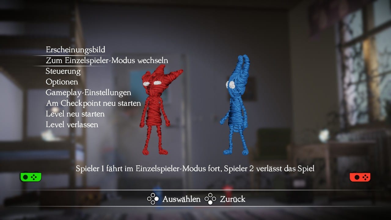Lobenswert ist der sehr flüssige Übergang zwischen dem Einzelspieler- und Koop-Modus, der bequem über die Einstellungen erreicht werden kann und für Switch-Freunde wohl besonders wichtig sein sollte, verkauft sich die Konsole doch auch aufgrund ihrer großen Koop-Fähigkeiten. Ein Knopfdruck und schon erreicht man die Controller-Auswahl, sodass es unmittelbar losgehen kann. Ich habe zusätzlich die Steuerung über den einzelnen Joycon ausprobiert und war auch in dieser Hinsicht sehr zufrieden. Alle anderen Kontrolloptionen funktionieren einwandfrei und sollten euch keineswegs blockieren.