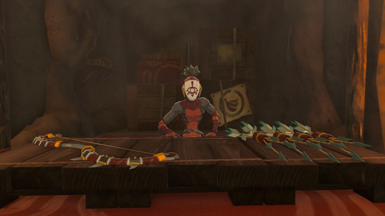 Ebenfalls im Eingangsbereich befindet sich ein Yiga, der euch normale Holzpfeile und einen Doppelschussbogen verkauft. Ein solcher Bogen ist natürlich äußerst praktisch, mit 88 Rubinen aber auch nicht gerade günstig. Entscheidet selbst, ob euch ein solcher Bogen das Geld wert ist oder ob ihr diesen Händler einfach auslasst.