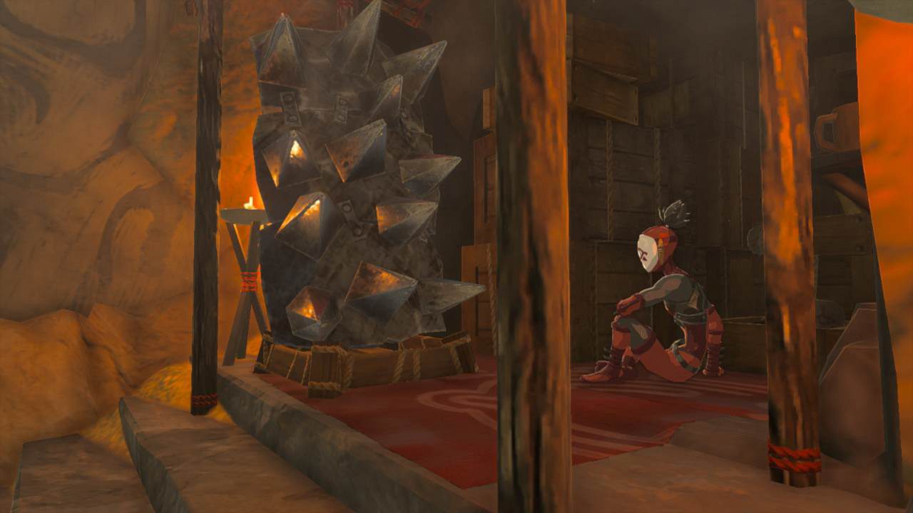 Sobald ihr den Blitzschutzhelm gewonnen habt, könnt ihr das Schwertbananenlager im angrenzenden Bereich betreten. Genau dort könnt ihr eine Hintertür öffnen, die direkt zu einem Schrein führt. Ansonsten bringt euch der Zugang zu diesem Bereich nicht wirklich viel, doch die Abkürzung durch den Teleportationspunkt zu haben ist recht nett.