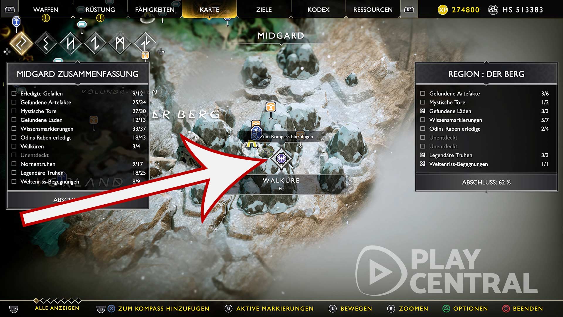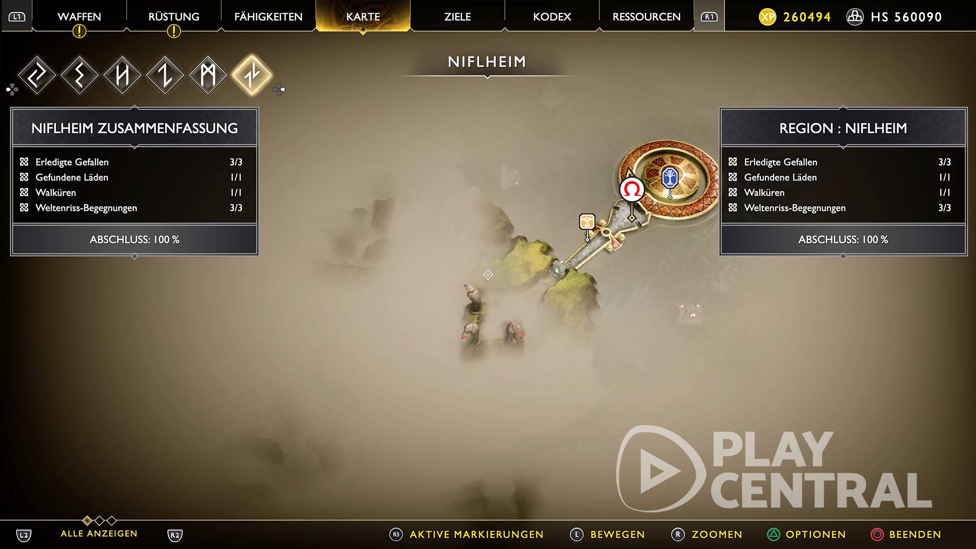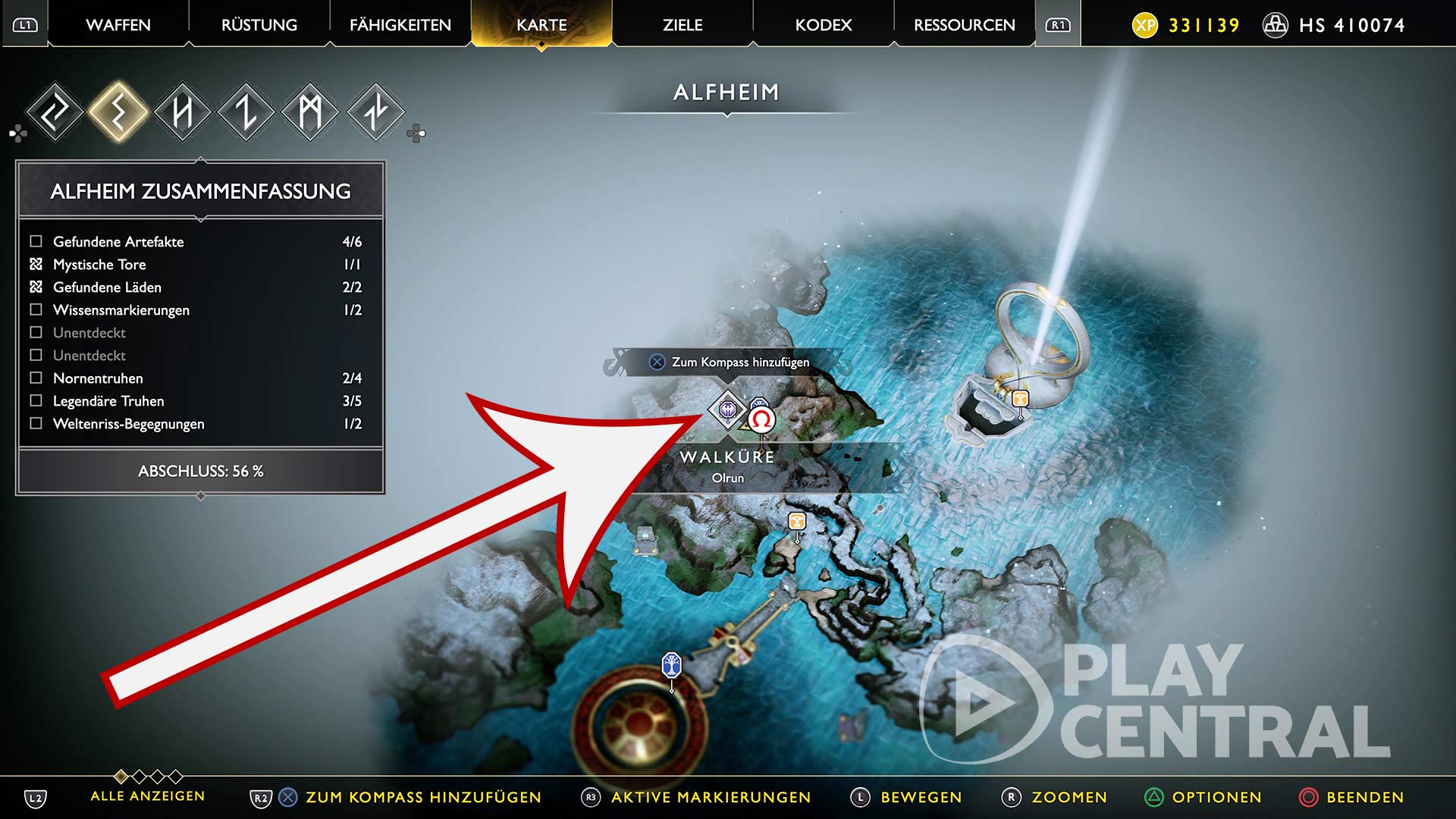 Erst wenn ihr die Handlung von „God of War“ auf einem beliebigen Schwierigkeitsgrad abgeschlossen habt, werden euch alle Standorte der Walküren auf eurer Karte angezeigt. Bereits vier der Kreaturen verstecken sich vor Kratos in Midgard, also der Welt, in der ihr beginnt und die am umfangreichsten ausfällt. Die restlichen vier Kämpferinnen verstecken sich jeweils in Alfheim, Helheim, Muspelheim und Niflheim.