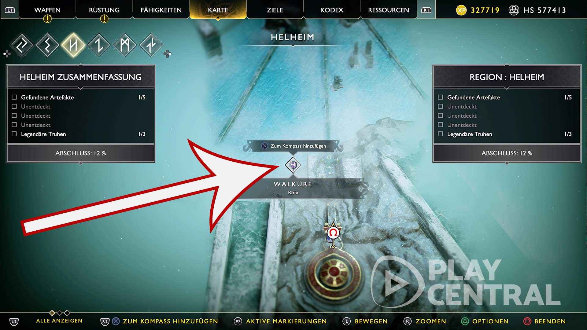- Kauft vorher einen Auferstehungsstein: Der wohl einfachste aber effektivste Tricks besteht darin, dass ihr vor jedem Kampf beim Händler einen Auferstehungsstein kauft. Sollte die Lebensleiste von Kratos während eines Kampfes gen Null sinken, könnt ihr die Viereck-Taste drücken. Dadurch werdet ihr von Sohn Atreus wiederbelebt. Ihr erhaltet durch diesen kostbaren Gegenstand also ein zweites Leben geschenkt. Vor allem wenn ihr einer Walküre bereits mehr als die Hälfte an Gesundheit abgezogen habt, erhöhen sich durch einen solchen Auferstehungsstein eure Chancen auf einen Sieg beträchtlich.