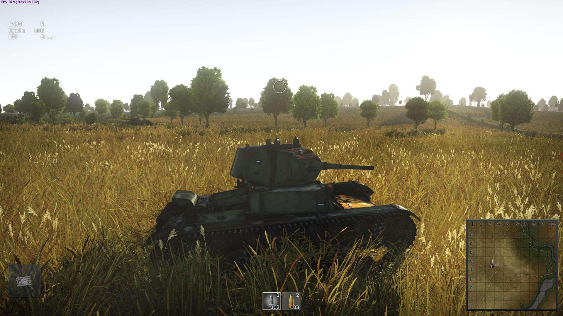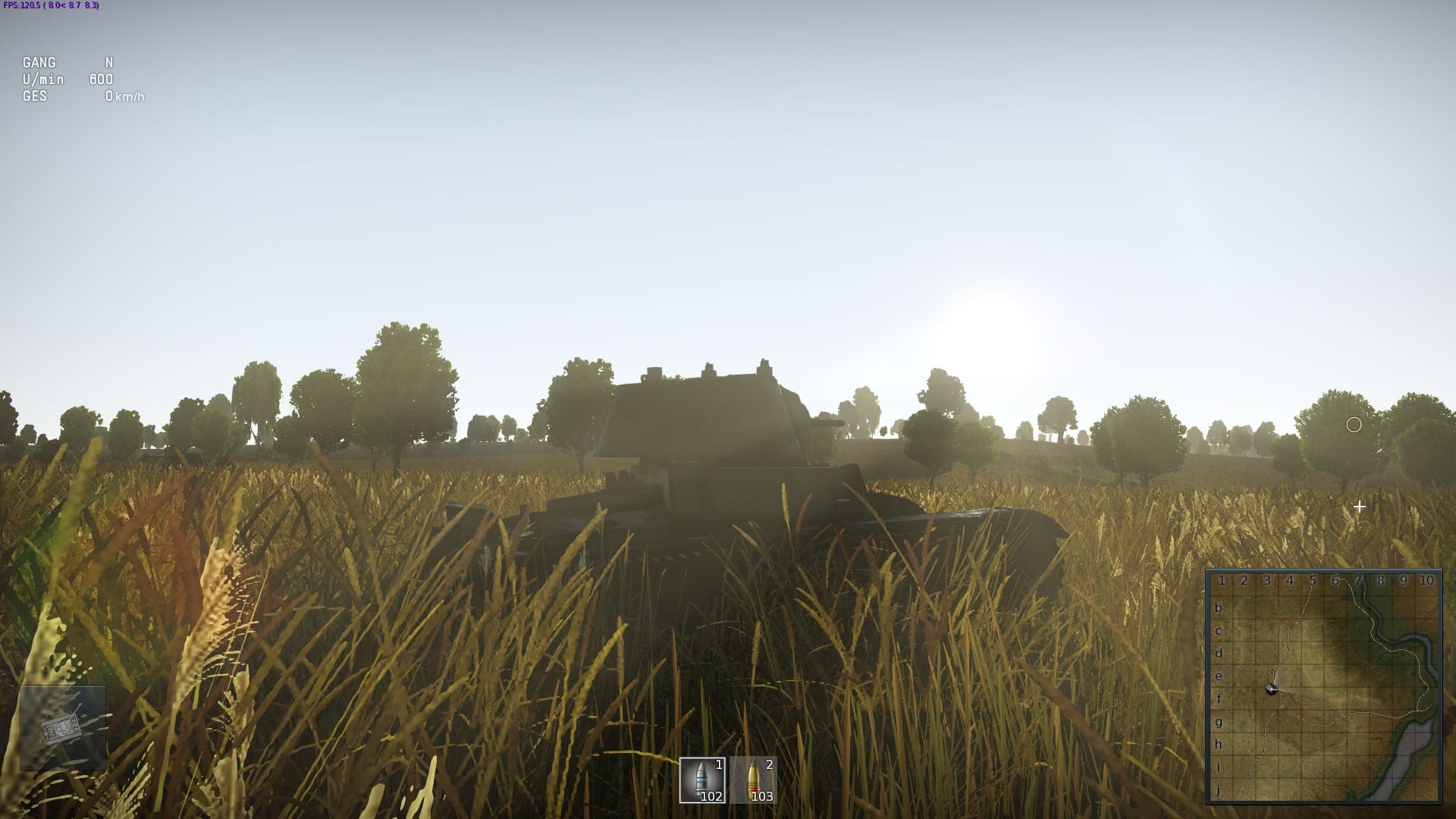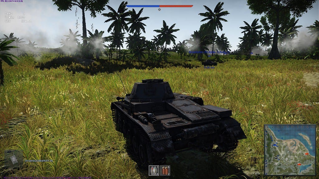 Die Panzer sind sehr detailreich, wunderschön anzusehen und jedes kleine Teilchen bewegt sich korrekt. Wenn wir unser Gefährt durch das dichte Dschungelgebiet donnern, dann sehen wir ineinandergreifende Zahnräder, die uns antreiben. Das gefällt! Die Landschaften der verschiedenen Karten können sich ebenfalls sehen lassen, schwächeln allerdings manchmal doch sehr bei Licht und Schatten. Einige wirken zu hell, andere sind zu dunkel und durch die realistischere Darstellung der Vegetation auf hohen Grafikeinstellungen haben Spieler mit niedrigen Details tendenziell einen Vorteil. Dem Spielerlebnis zuliebe sollte man die Grafikdetails schon hoch halten, sofern der PC das mitmacht. Makellos hingegen ist der Sound, da rattert und rummst es an den richtigen Stellen.