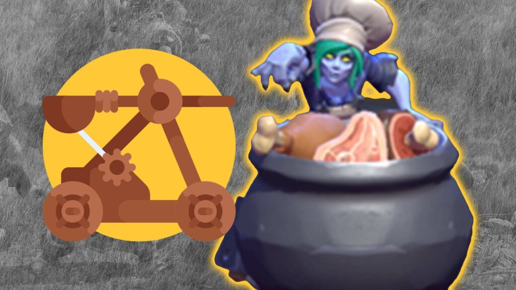 Chefköchin Audrey hat es in „WarCraft Rumble“ allerdings faustdick hinter den Ohren. Ihre Geheimwaffe sind Belagerungsmaschinen: die sogenannten Fleischwagen – Katapulte, die mit Fleisch schießen und nicht mit Steinen (was auch sonst).