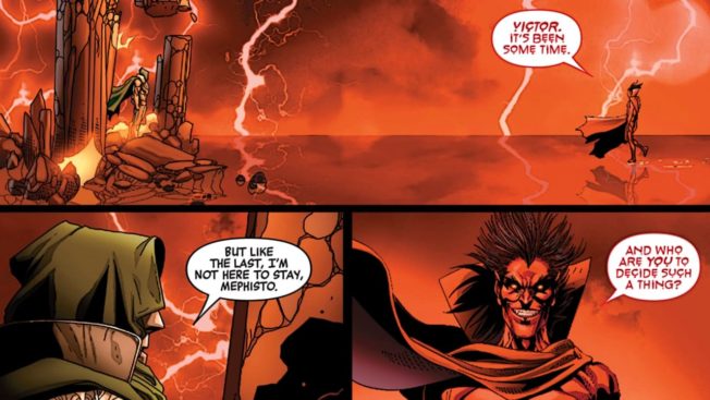 Eine beliebte „WandaVision“-Theorie rankte sich um den Dämon Mephisto, gemäß derer dieser unserer Heldin Wanda böse mitgespielt hätte. In diesem Universum tobt ein gewaltiger Kampf zwischen Mephisto und Doctor Doom, dem Erzfeind der Fantastischen Vier. Doom kämpft mit dem Dämon um die Seele seiner Mutter.