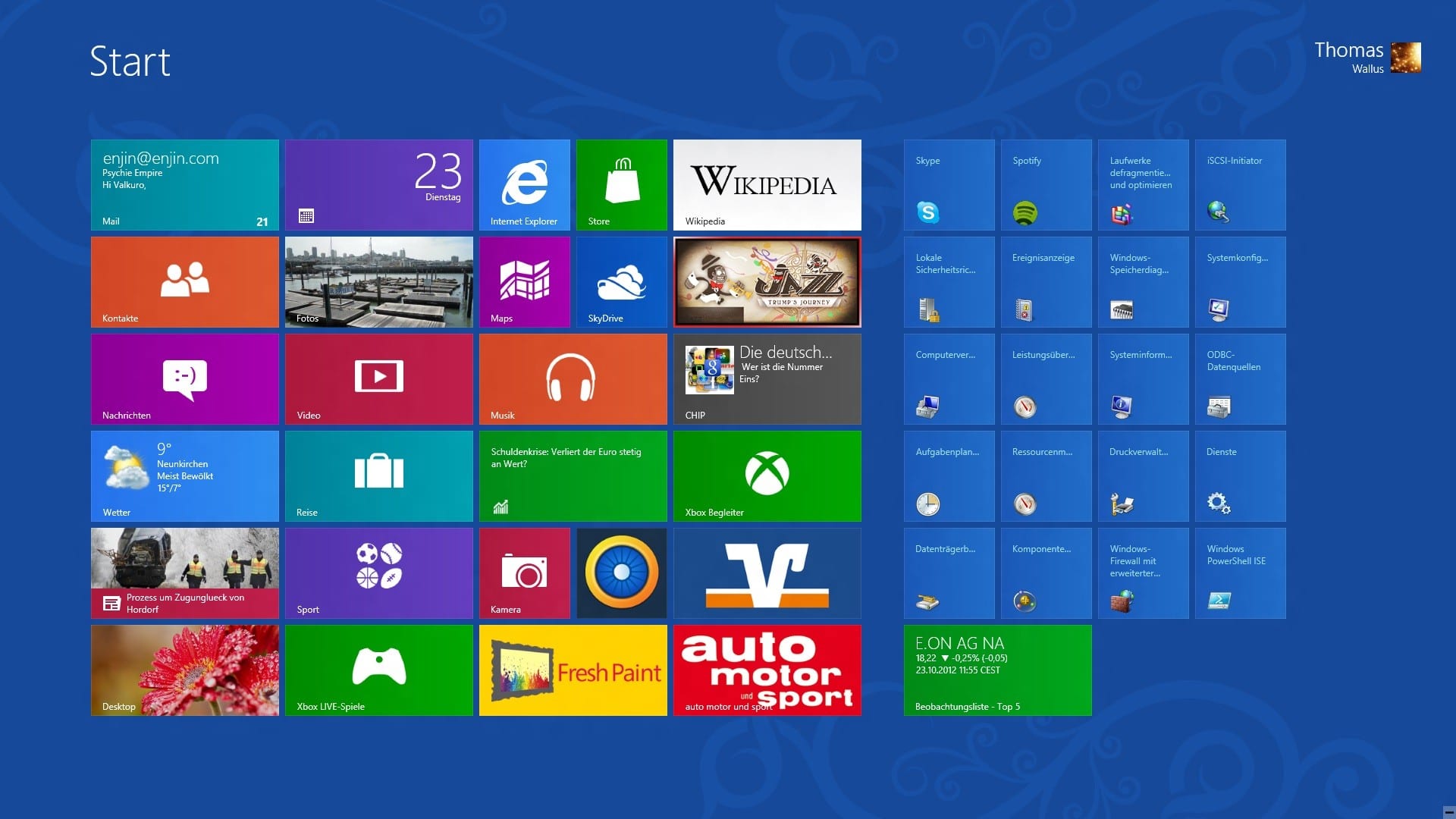 Diesen Minuspunkt in den Apps hebelt Microsoft durch den Startbildschirm aus. Die Anordnung der verschiedensten Windows-Applikationen freut sich nämlich über ein Live-Feature. Die Mail-Kachel blendet ungelesene Post ein, Business-Interessierte heften sich relevante Aktienkurse in die Übersicht, während die Kontakte-App Neues aus der Welt von Facebook mit einem teilt. Im Übrigen ist das soziale Netzwerk ein Beispiel dafür, wie Microsoft von sich aus gewisse Dienste selbst in sein Betriebssystem integriert. Wer sich schon mal mit einer App über Android oder iOS über die Neuigkeiten seiner Freunde informieren wollte, kennt Look und Feel der typischen, offiziellen Facebook-App. Beim Kontakte-Bildschirm in Windows 8 dreht sich hingegen wieder alles um die Spaltenansicht. Posts ziehen sich zum Teil über die komplette Vertikale, die Navigation erfolgt hin zur Seite. Ein wahres Desaster für alle, die sich schon nicht mit der Chronik anzufreunden wagten. Dafür ist wiederum alles größer und eben voll auf Touch ausgelegt. Somit ist ein weiteres Beispiel für den Unnütz mancher Apps am Heim-PC gefunden, selbst sollte eine offizielle Facebook-App folgen. Vieles lässt sich eben auch über wenige Klicks im Browser erleben.