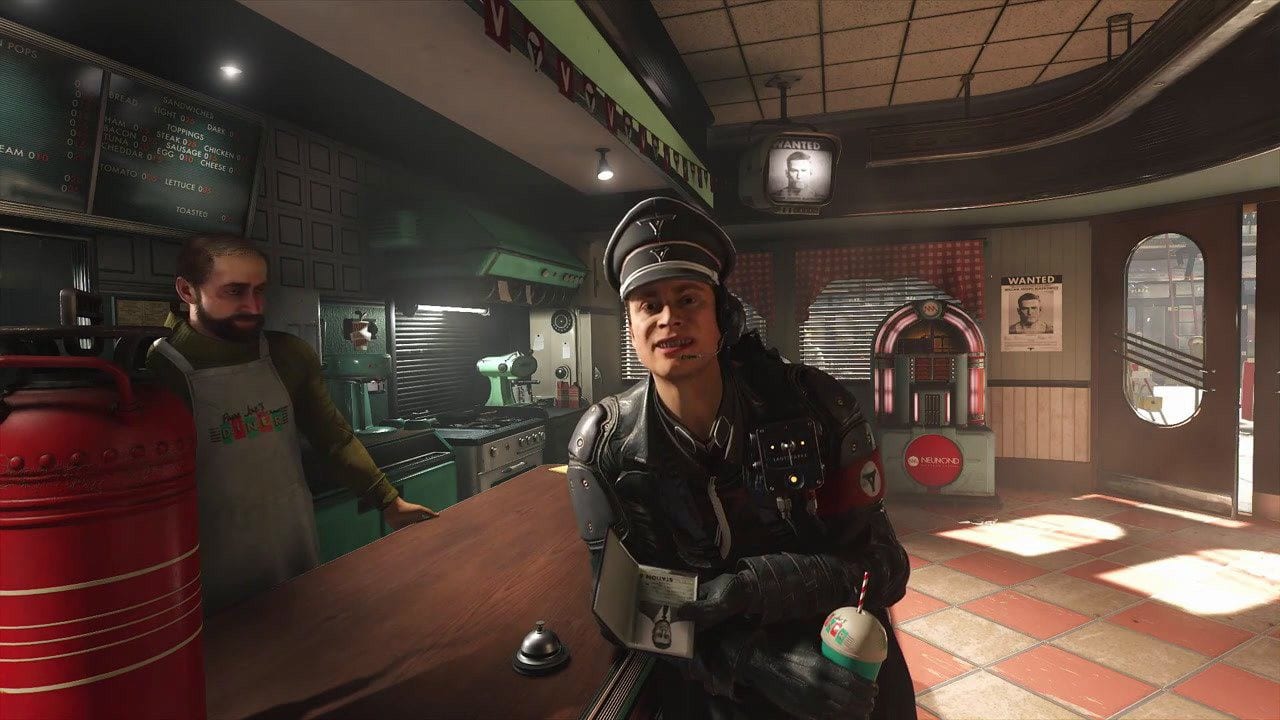 Die zuvor beschriebene, einzigartige Umgebung kann sogar malerische Kunst beinhalten, sodass ihr selbst in einem Wolfenstein II einmal innehalten möchtet und euch die zerklufteten Welten eines zerstörten Amerikas für mehrere Minuten anseht. Doch neben wundervollen Gemälden erhalten wir auch musikalische Kompositionen, die in dem Fall von Mick Gordon, der bereits für DOOM eine bemerkenswerte Arbeit an den Tag legte, erschaffen wurde. Doch der allgemeine Klang, der sich in kleinsten Soundeffekten oder der vertonten Stimme einer Figur verstecken kann, muss genauso individuell und einzigartig inszeniert sein, um nicht in Vergessenheit zu geraten. Witzigerweise gibt es diesbezüglich sogar Erinnerungen an den allerersten Wolfenstein-Ableger, den wir als Spieler heute immer noch im Gedächtnis tragen. Und auch hier könnten wir die Sprachvertonung als solche herausziehen und sie als Kunstform deklarieren. Denn die Phonetik einer Sprache und des gesprochenen Wortes könnte von jemanden als solche interpretiert werden. Bethesda hat an keinen Ecken gespart, was uns schließlich zu einem zeitgerechten Narrativ führt.