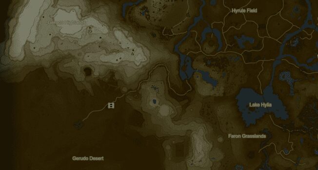 Jetzt führt euch euer Weg weit in den Süden von Hyrule, nämlich in die Gerudo-Wüste, wo ihr nordöstlich der Stadt Gerudo einen Wüstenbasar und damit die vierte Erinnerung findet. Folgt dafür einfach dem Pfad aus der Stadt hinaus nach Nordosten.