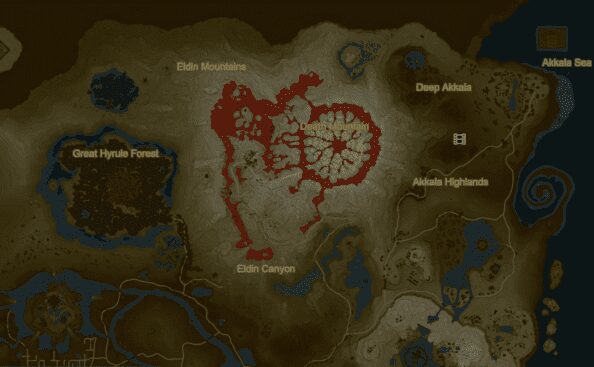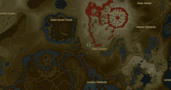 Von einem heißen Ort direkt zum nächsten. Um die fünfte Erinnerung zu finden, begebt ihr euch weit in den Nordosten der Welt, nämlich ins Gebirge von Eldin. Zwischen den Minshi-Wäldern und dem Goronbi-See wartet die Erinnerung bei einer Schlucht auf euch.
