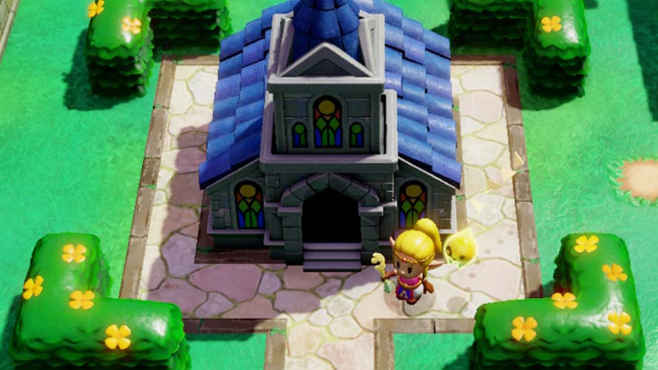 Im Riss angekommen, gilt es erstmal einen Abstecher in die kleine Kirche zu machen. Die Moblin-Bande im Inneren kannst du mit den Monstern deiner Wahl ausschalten. Ich empfehle hier zum Beispiel ein paar Gibdo, da diese sehr viel Energie haben und zwei von ihnen locker gegen die ganze Bande bestehen. Aber fühl dich frei, andere Monster-Echos zu wählen!