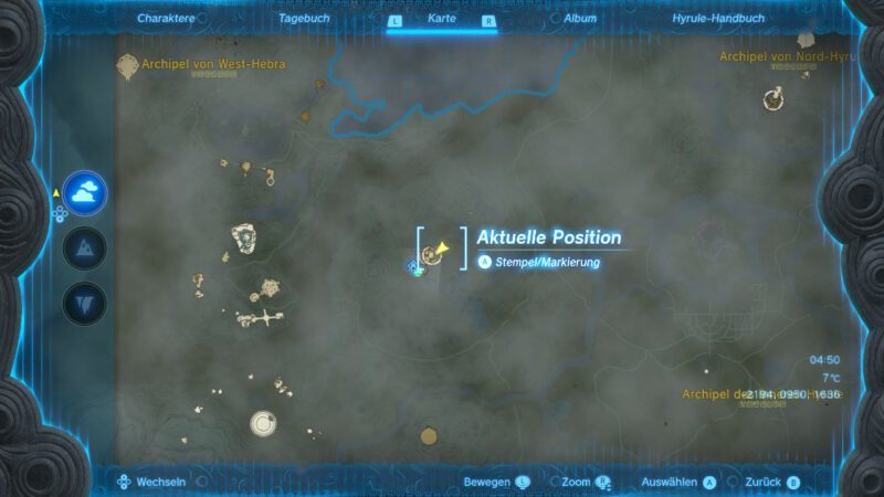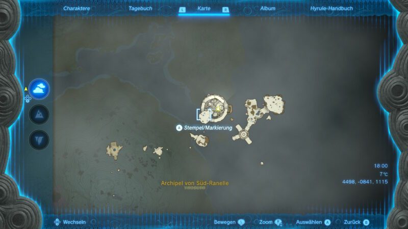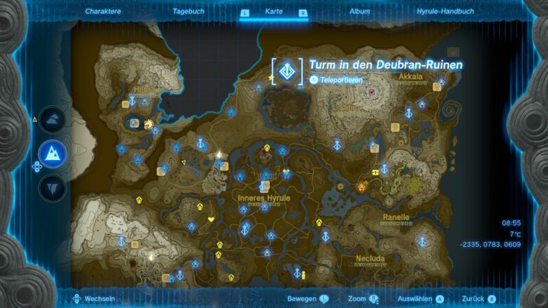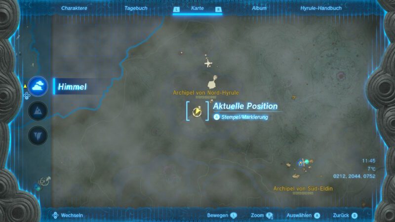 Jetzt wisst ihr ja schon mal, worauf ihr euch eingelassen habt. Euer nächstes Ziel liegt weit im Norden, nämlich der Turm in den Deubran-Ruinen. Auch hier lasst ihr euch wieder in die Luft schleudern, wo ihr erneut Ausschau nach einer kreisförmigen Insel haltet, die als Austragungsort für die Sturzflug-Zeremonie dient. Dieses Mal ist die Insel im Süden aber ganz schön weit entfernt.