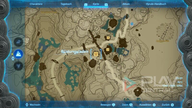 Wir können das gesamte Rüstungsset kaufen und zwar in Goronia. Teleportiert euch also zum Marak-gutsi-Schrein, der direkt in Goronia liegt, und lauft zum Rüstungsladen.