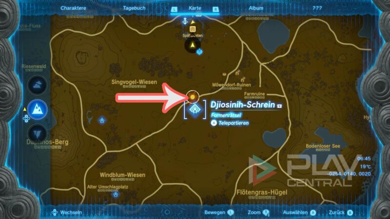 Wir starten auf den Weg zum Abgrund südlich des Spähpostens (siehe Karte), er ist gleich in der Nähe. Es ist der sogenannte Abgrund der Ebene von Hyrule.