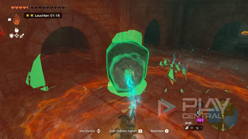 Wenn ihr diesen Weg nun freigeräumt habt, könnt ihr auf der linken Seite noch eine Truhe finden. Nur leider ist sie durch ein Stahlgitter versperrt. Was also tun?