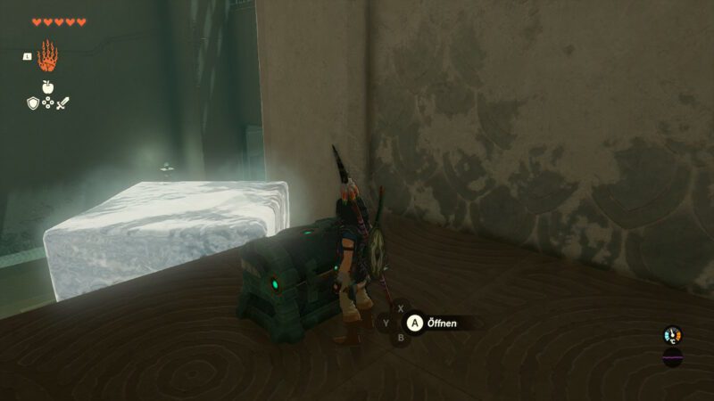 Ist das Gitter erst einmal von einem Eisblock geöffnet worden, bleibt es offen. Ihr könnt den Eisblock also mit Ultra-Hand entfernen und in den nächsten Raum tragen, um ihn dort zu verwenden, um die Kiste zu erreichen, in welcher sich eine Sonanium-Lanze befindet. Danach geht es mit dem zweiten Rätsel weiter.