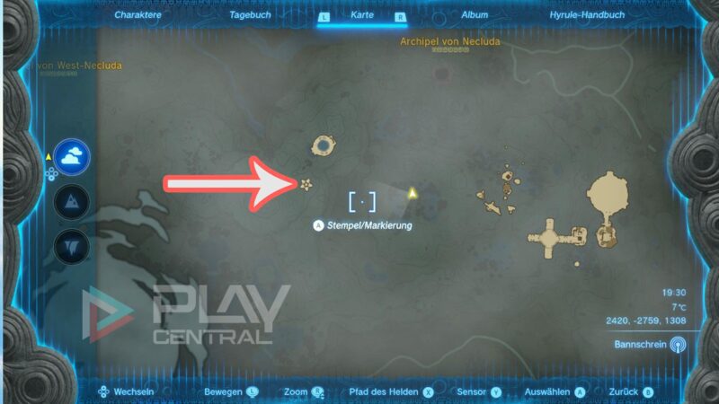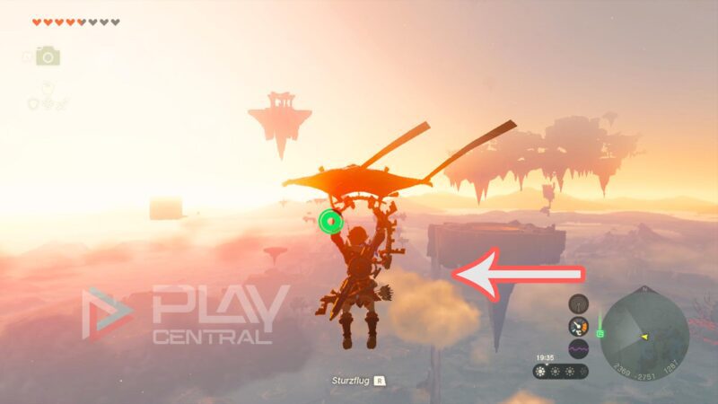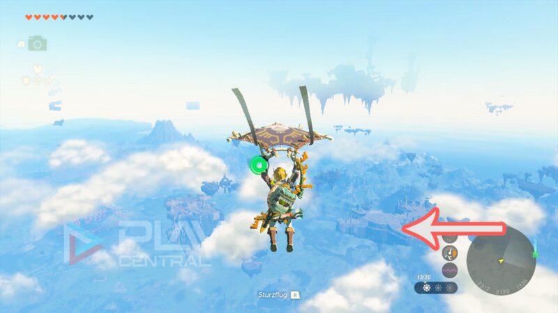 Ihr könnt deshalb ganz einfach auf der Himmelsinsel starten und gen Süden abfliegen. Hier bietet sich zum Beispiel der Schrein im Süden der Himmelsinsel an: der Natjo-yaha-Schrein.