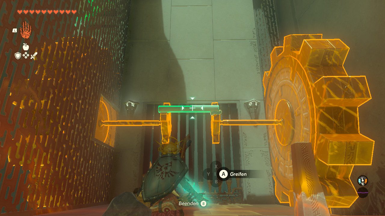 Tut dies und es kommt Leben in die Apparatur. Die Rädchen beginnen sich zu drehen und das große Gitter dahinter wird angehoben, wodurch Link sein Abenteuer in diesem Schrein fortsetzen kann. Jetzt wisst ihr auch schon im Groben, worauf es bei dieser Herausforderung ankommt und habt vielleicht direkt ein besseres Auge für die nachfolgenden Rätsel.