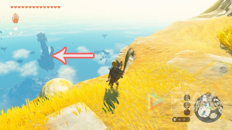 Springt so lange an den Säulen entlang, bis ihr auf der westlichsten Säule nach oben gleitet. Hier seht ihr dann in der Mitte einen Eingang, wo ihr rein müsst! Der Eingang für die Mitte befindet sich also in der Mitte, nur eben weiter oben.