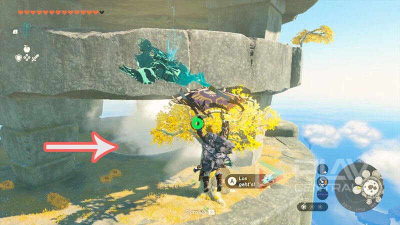 Hier können wir im Norden der Rundung landen (siehe Bild), da wir hier direkt den Schalter für die einzelnen Säulen finden. Aktiviert den Schalter und steigt nach und nach in die Höhe.