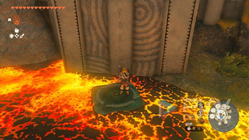 Blöd nur, dass unten überall Lava ist? Kein Problem. Zückt aus eurem Inventar das Sonau-Bauteil: Schwebender Stein. Wenn ihr das auf die Lava legt, könnt ihr einfach auf den Stein springen und den Sprung an die Decke vollziehen.